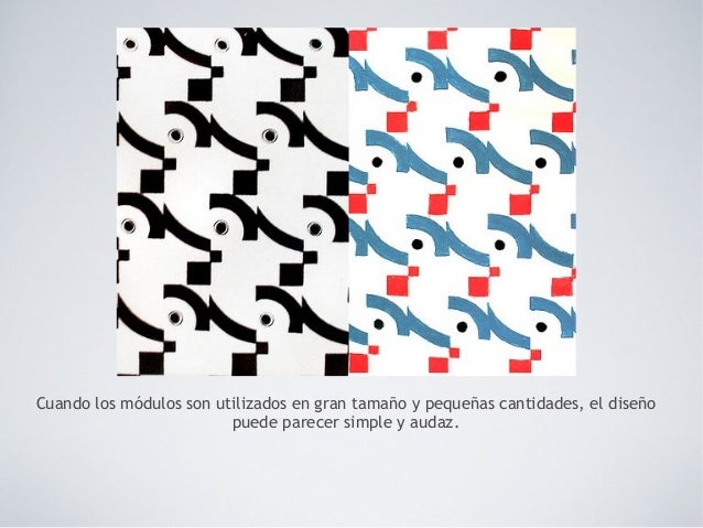 "Los módulos son formas idénticas que aparecen repetidamente en un diseño, se realiza a través de formas geométricas, planos, puntos, líneas, formas orgánicas."